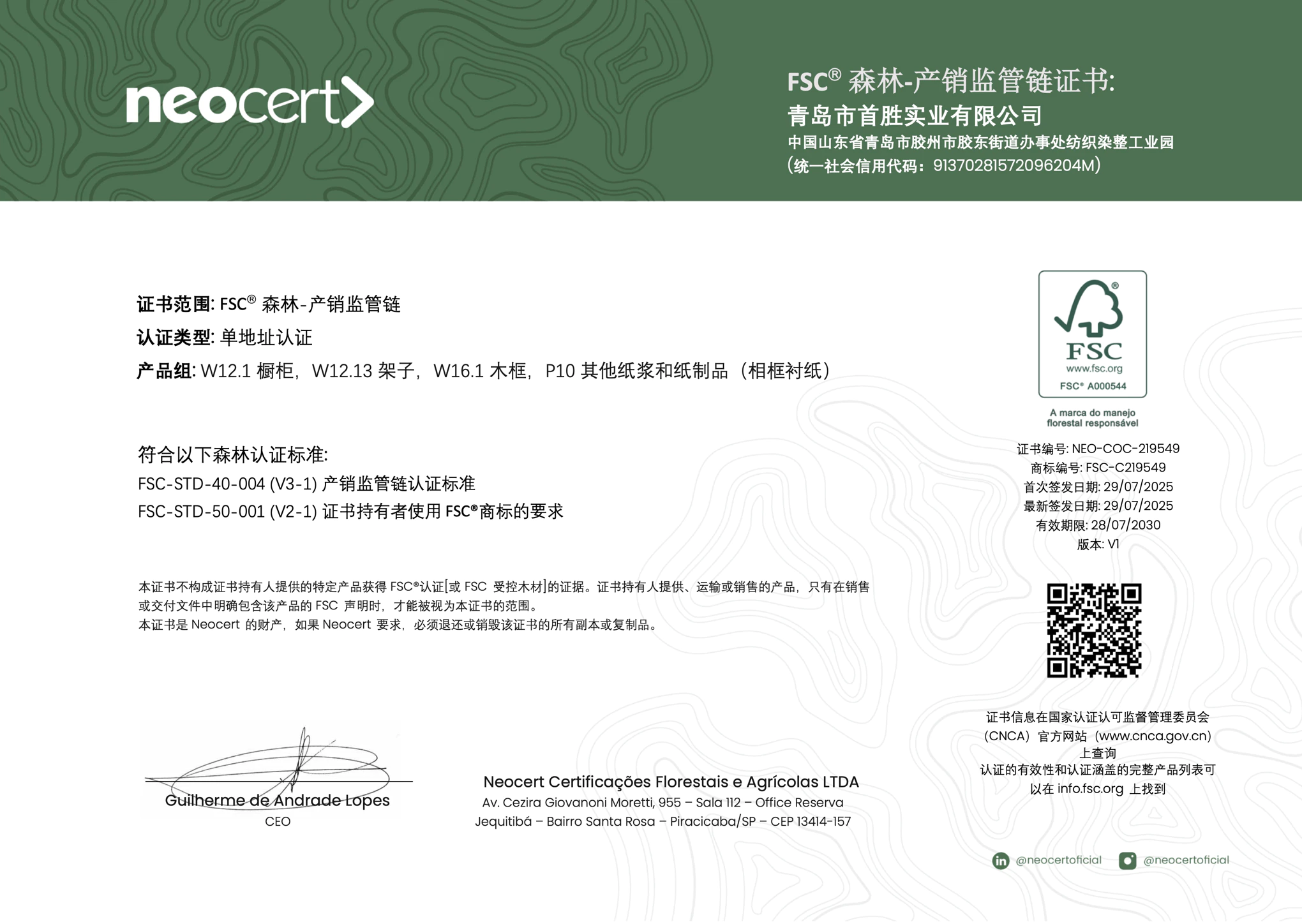 首胜始终秉持专业、敬业、完美的工匠精神,坚持可持续发展与社会责任,让时尚、环保、品质可靠的家居产品走进更多家庭,携手客户共创美好生活。
