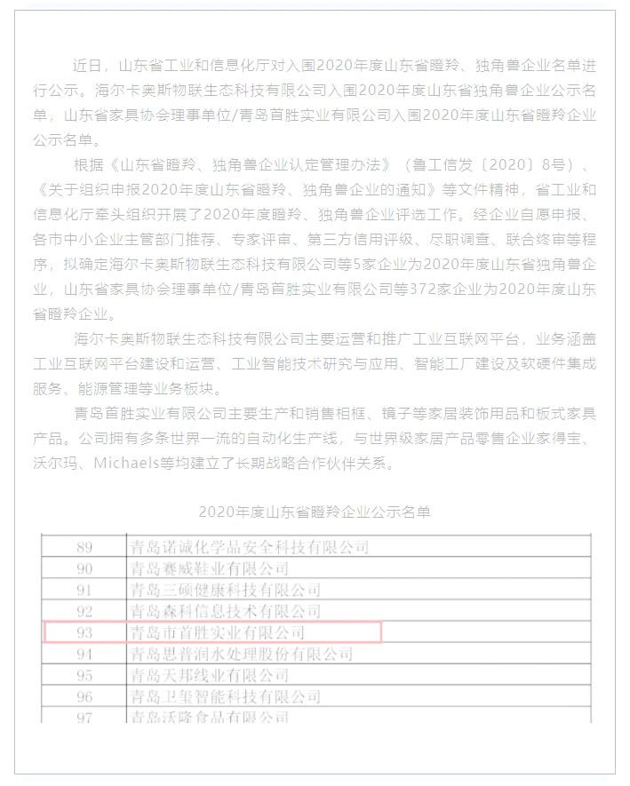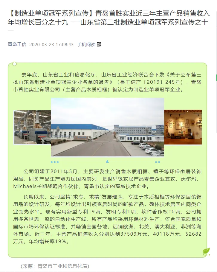 公司多次入选 青岛市企业技术中心、山东省瞪羚企业、行业单项冠军、环保先进企业,拥有专利 64 项、软件著作权 10 项,是国内木制相框与家居品类的重要“隐形冠军”之一。